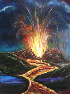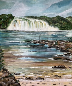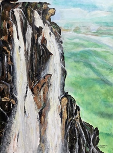 2021De hoogste waterval van de wereld, 979m, in het midden van Venezuela. acryl op canvas, deels met paletmes.