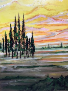 2020Een paar naaldbomen in de morgennevel, nog dromend...