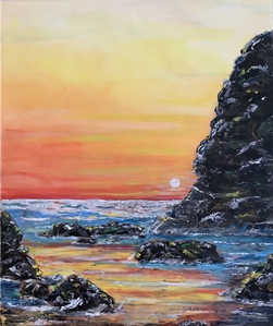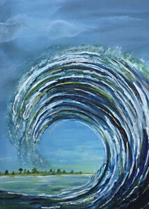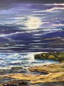 2020Dag en nacht, day and night.. 2 schilderijen, zeezicht, golven