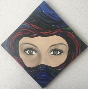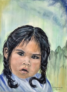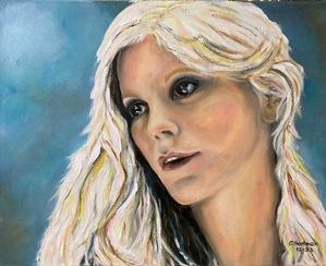2021Portret van een jonge vrouw, op de voorgrond ijsbergen en op de achtergrond is vaag de groene natuur te zien. Wie is zij! Vind ze je aardig?